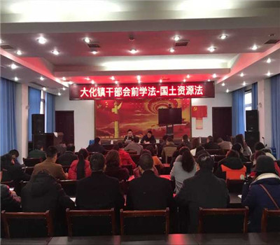 2018年3月12日会前学法,由国土城建办工作人员李道丁组织大家学习国土资源法。